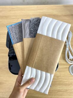 Vòi phun, hộp đựng nước, miếng lau thẩm thấu đặc biệt của iRobot. Hệ thống cảm biến, laser dẫn dường giúp robot định vị di chuyển khắp nhà bạn mà không bỏ sót m2 sàn nhà nào. Ngoài ra với những ngôi nhà hơn 100m2 và cần đến hơn 3 giờ lau của robot, bạn hoàn toàn yên tâm robot sẽ làm được hết vì robot sẽ tự nhớ khi chưa làm xong và Braava Jet M6 sẽ quay về sạc rồi trở lại lau tiếp khi pin được sạc đầy.